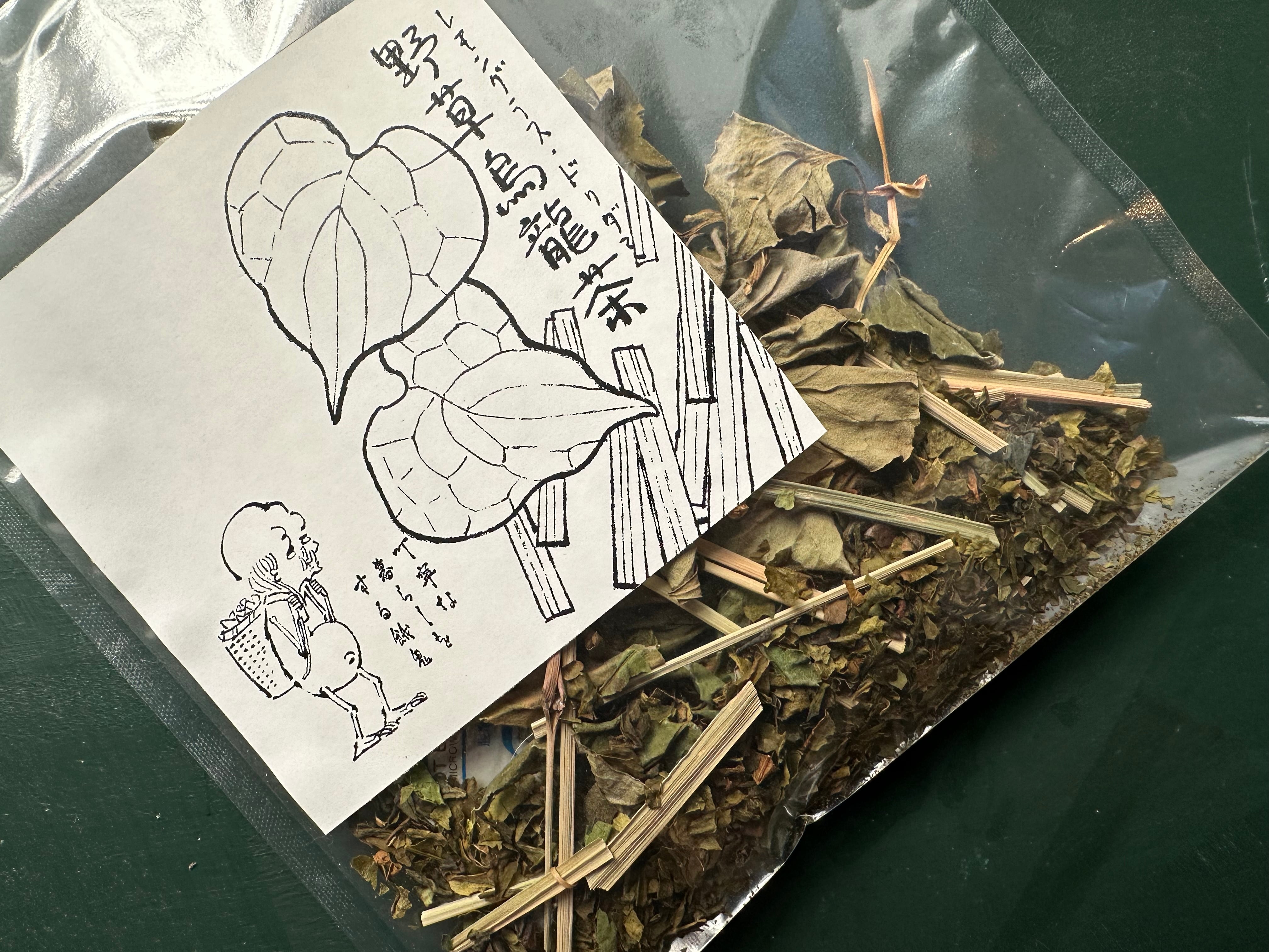 餓鬼の地元・愛媛県新宮町の農薬を使用しない野草茶。1パックで1リットルの野草茶が出来ます。お茶を作った後の出涸らしはフライパンで空炒りしてチャーハンに混ぜたり、レモングラスとドクダミの烏龍茶は揚げ物に混ぜるとエスニック風の風味を楽しめます。